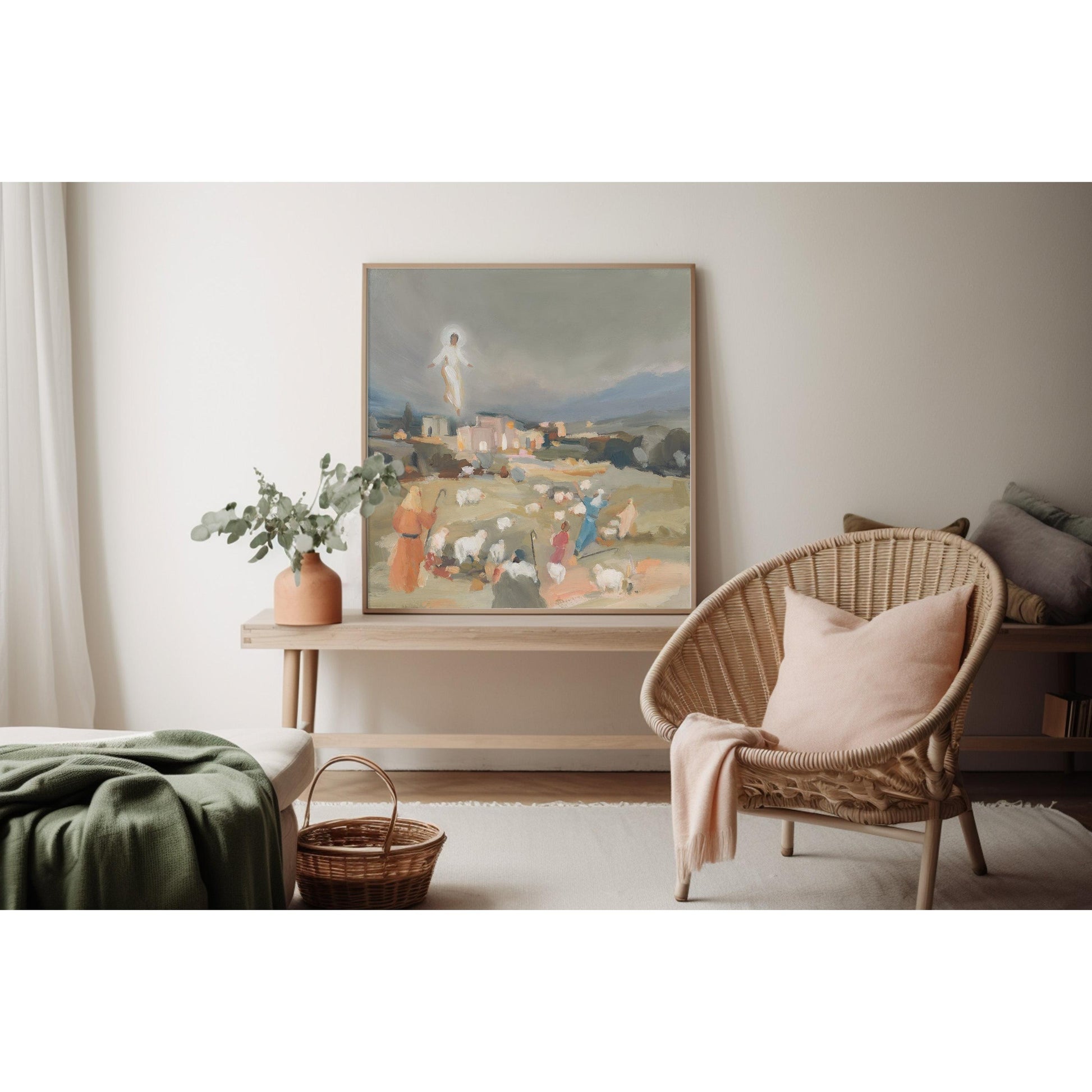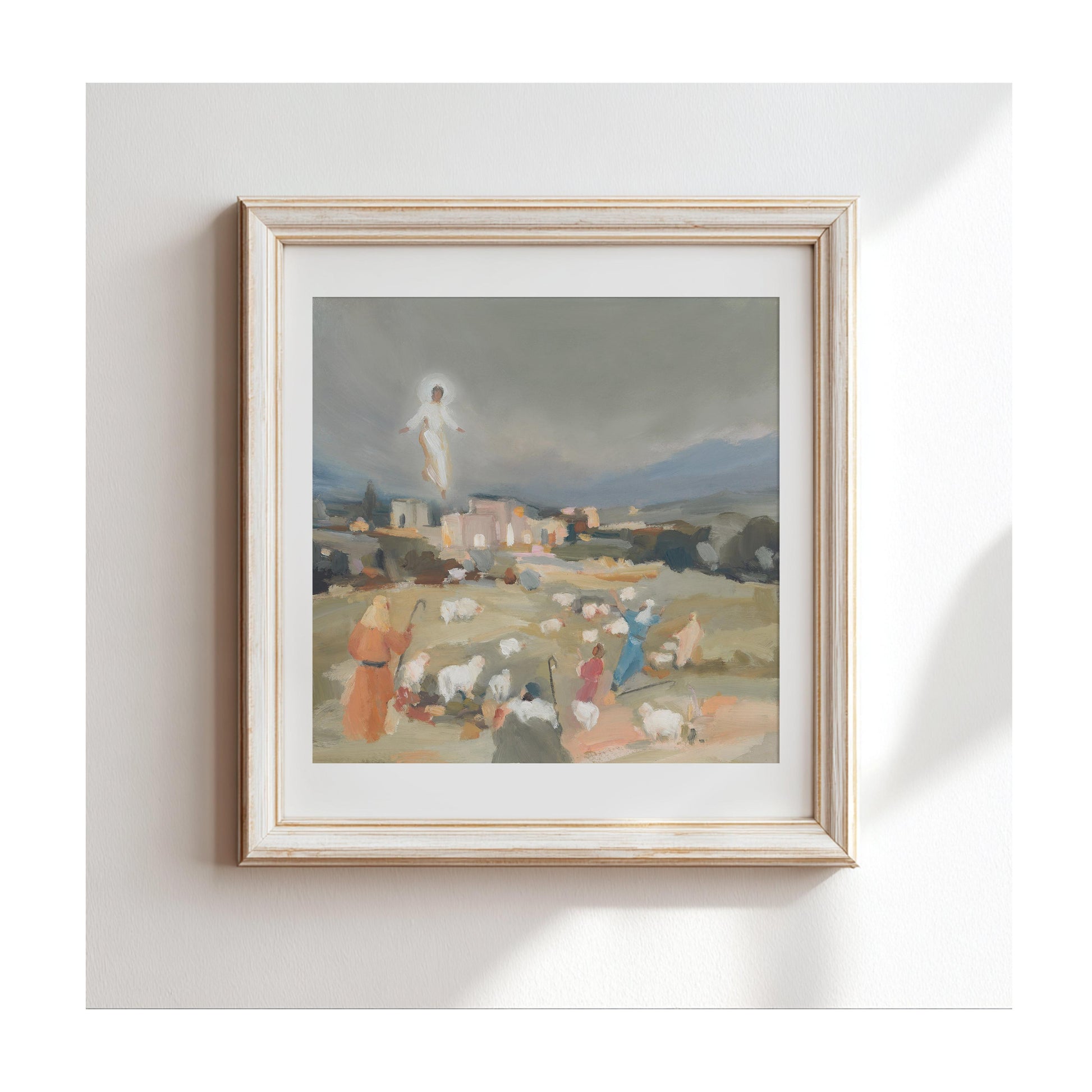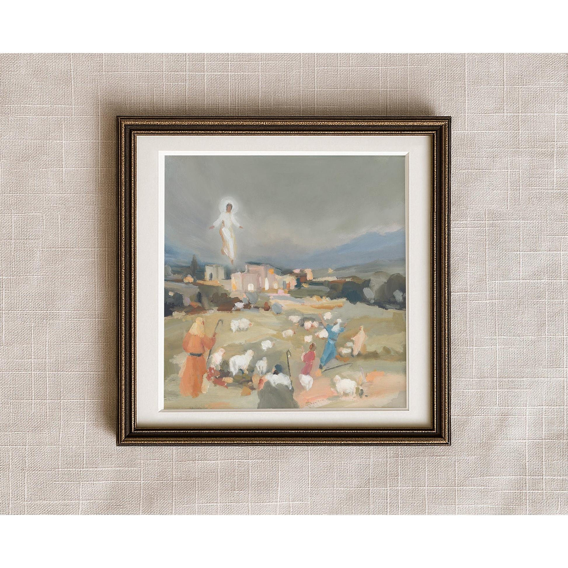 Christian Christmas Wall Art — "Behold in the Field" Angel Appears to Shepherds Scripture Print