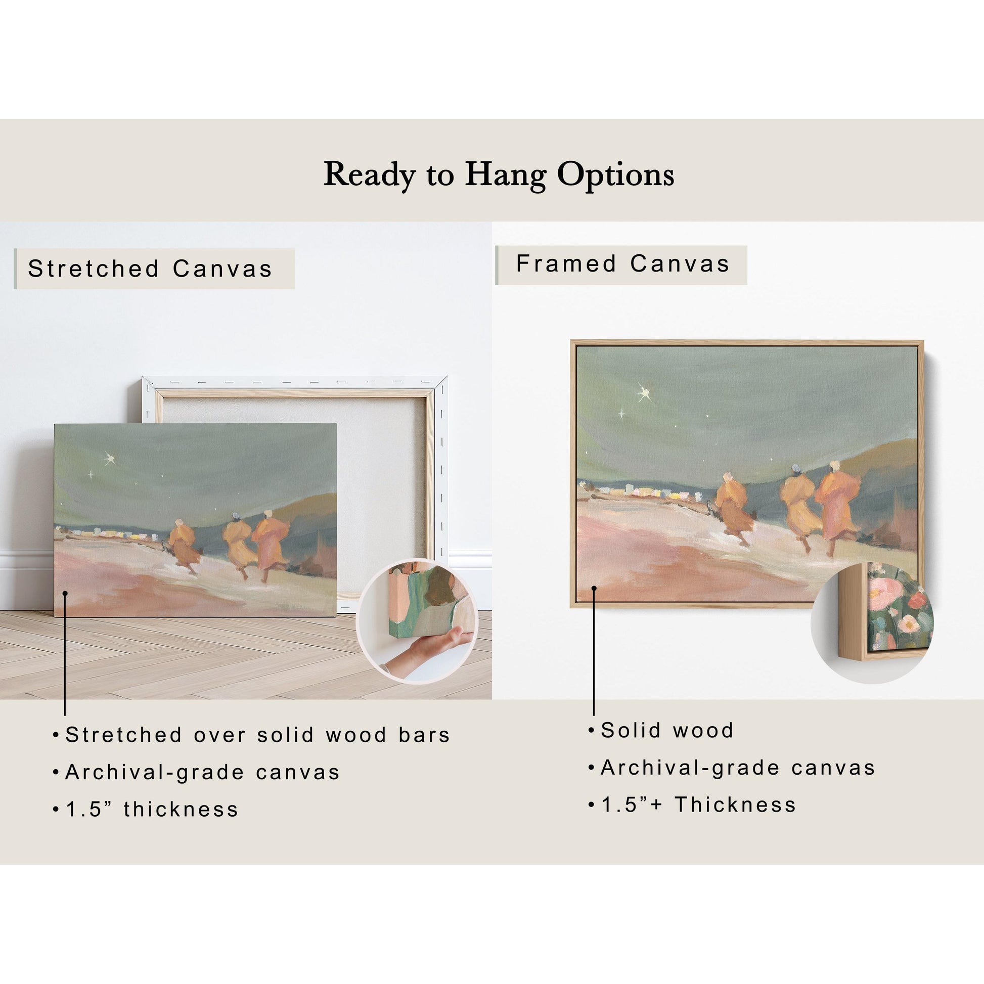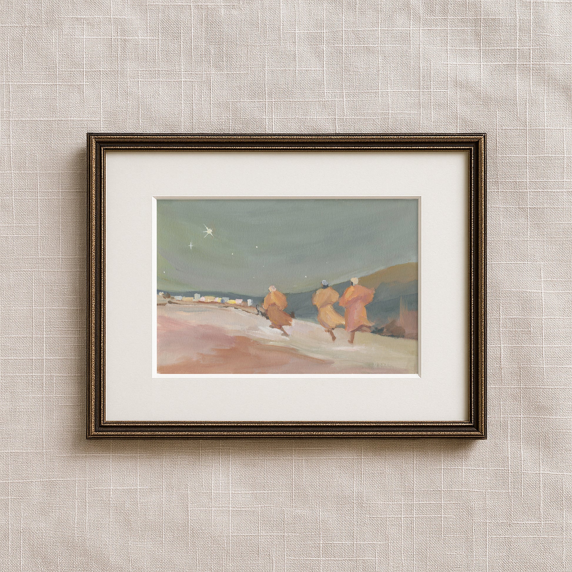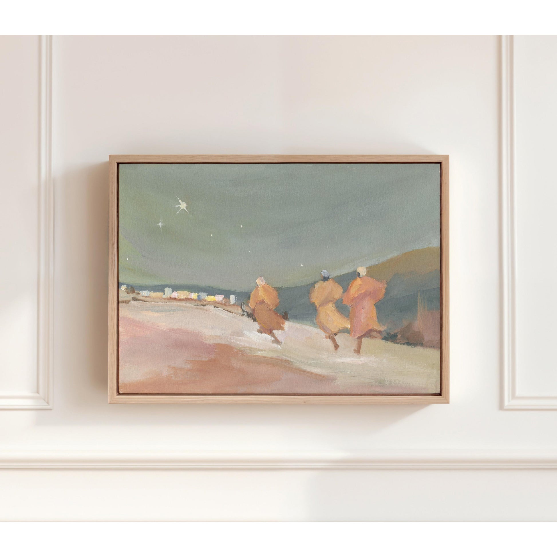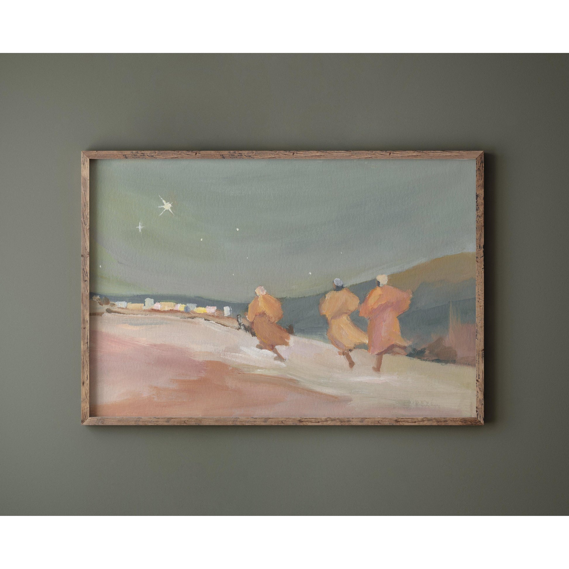 Christian Christmas wall art — shepherds running to Bethlehem print for faith-inspired holiday decor.