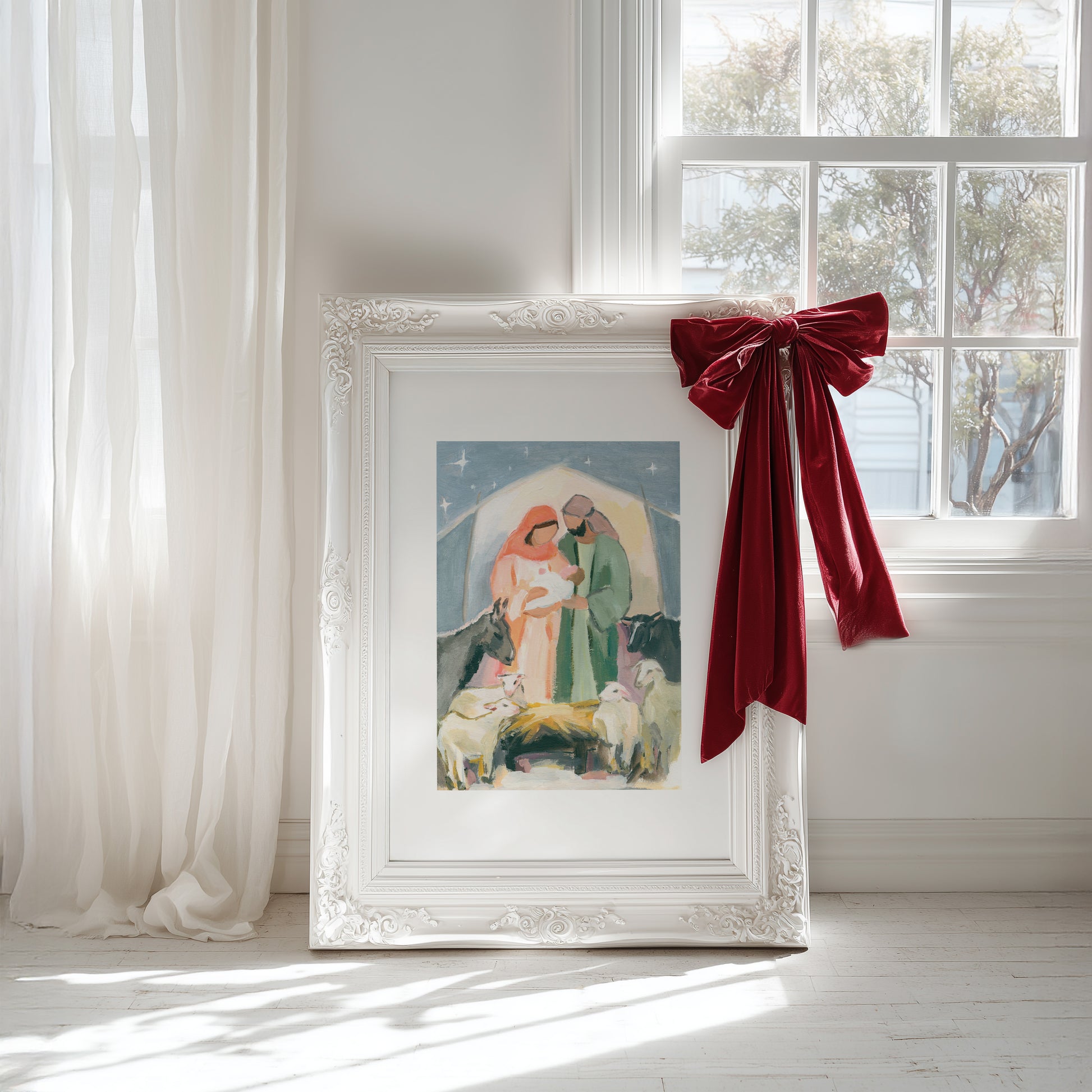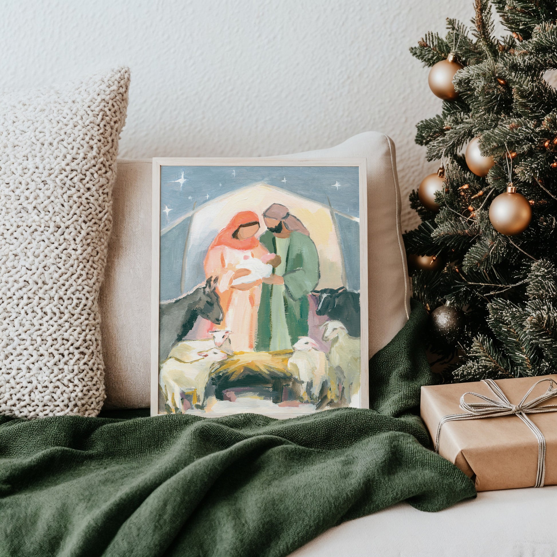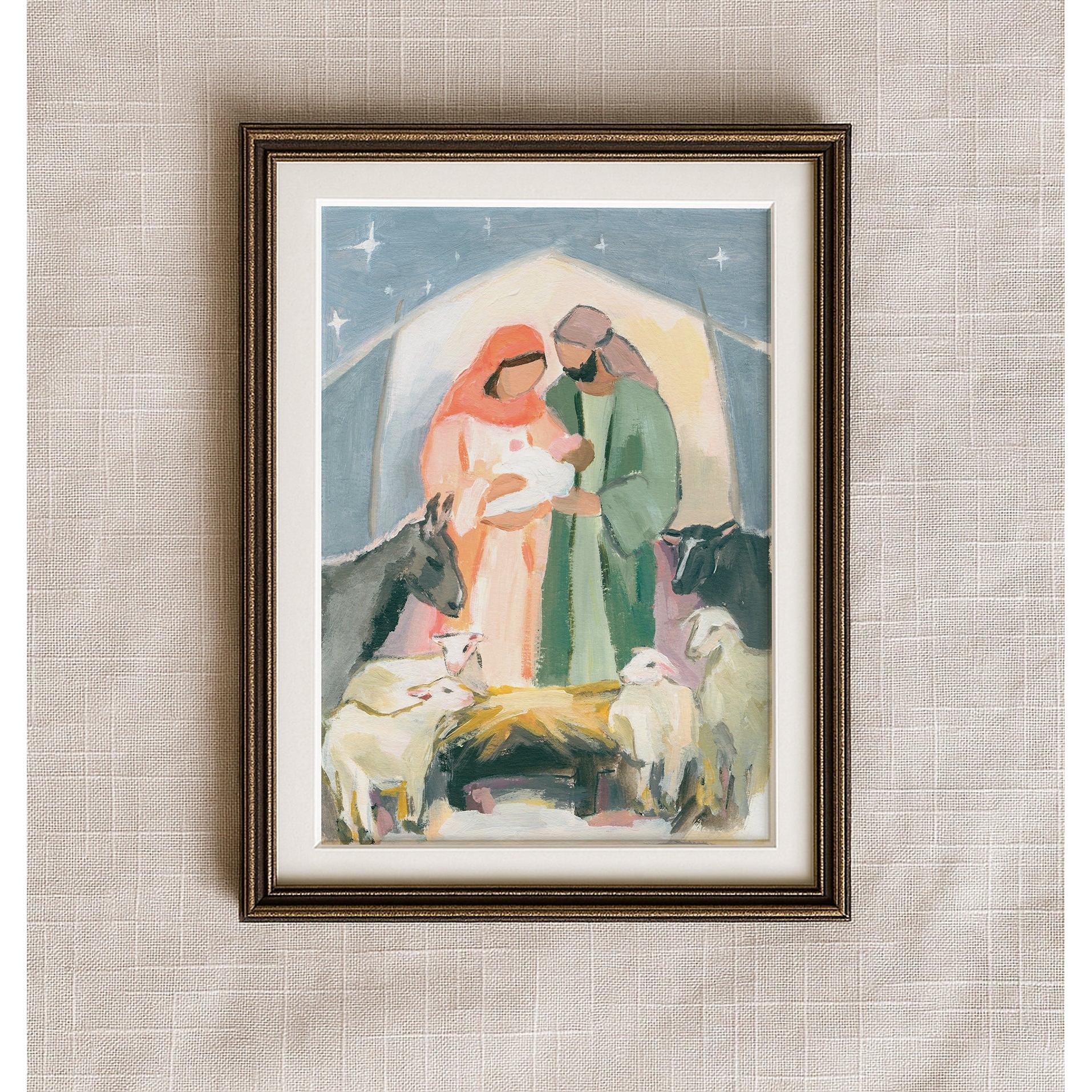 Christian Christmas wall art — “Straw and Starlight” nativity print for peaceful holiday décor and meaningful gifting.