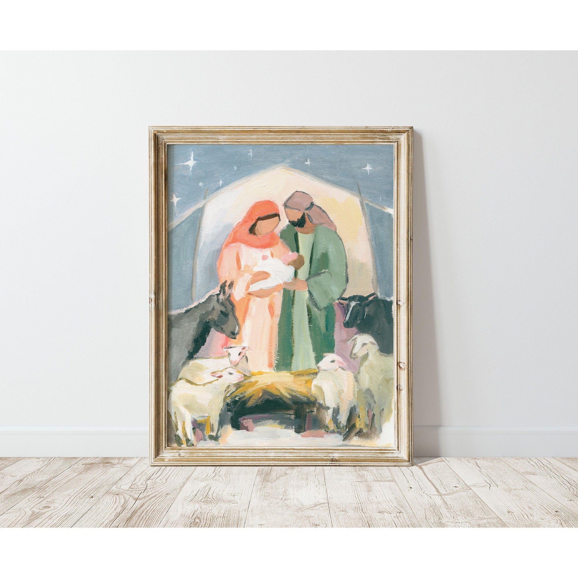 Christian Nativity Wall Art — Peace in Straw and Starlight | Christmas Decor Gift