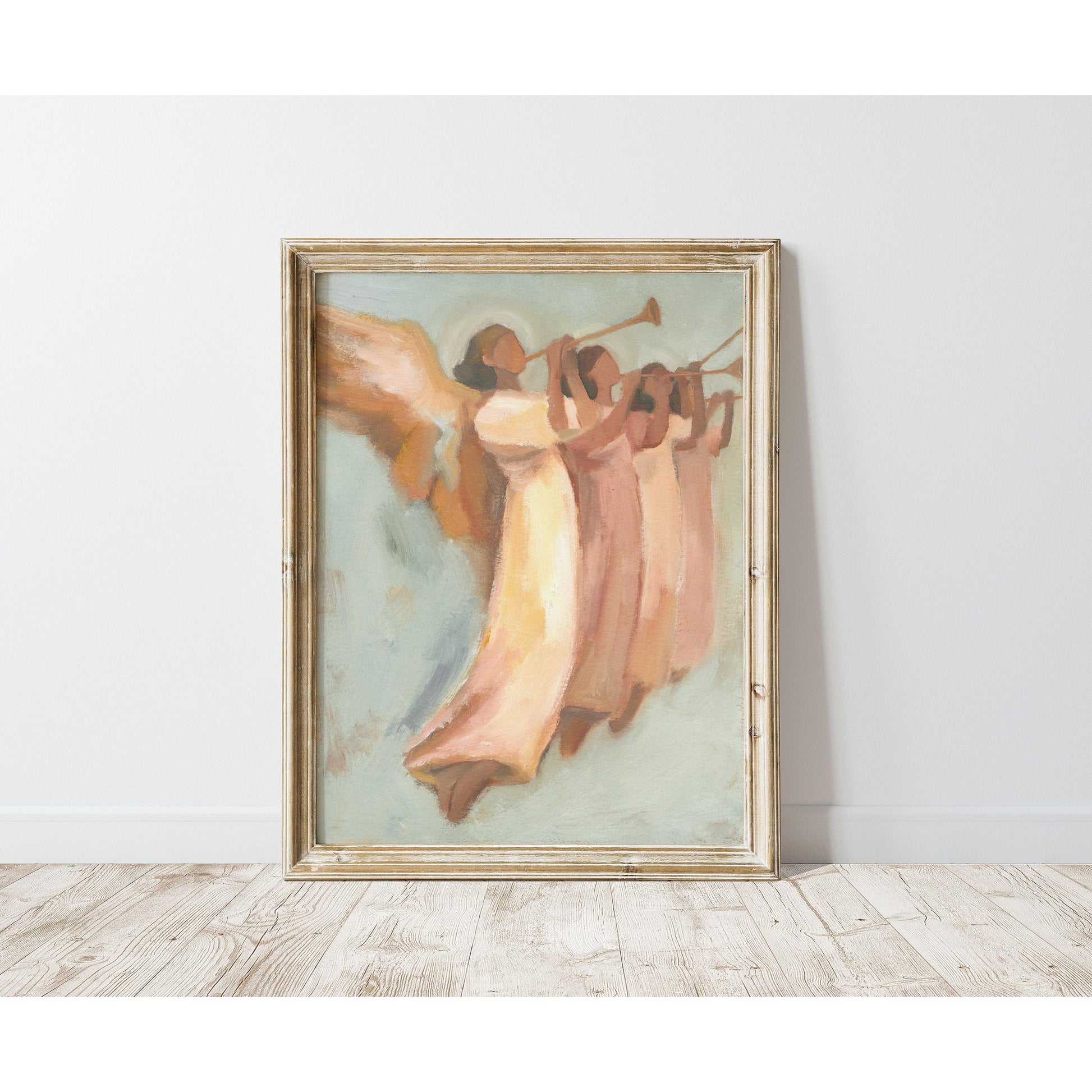 Christian Christmas wall art — angels trumpet print with Gloria in Excelsis Deo for joyful holiday decor.