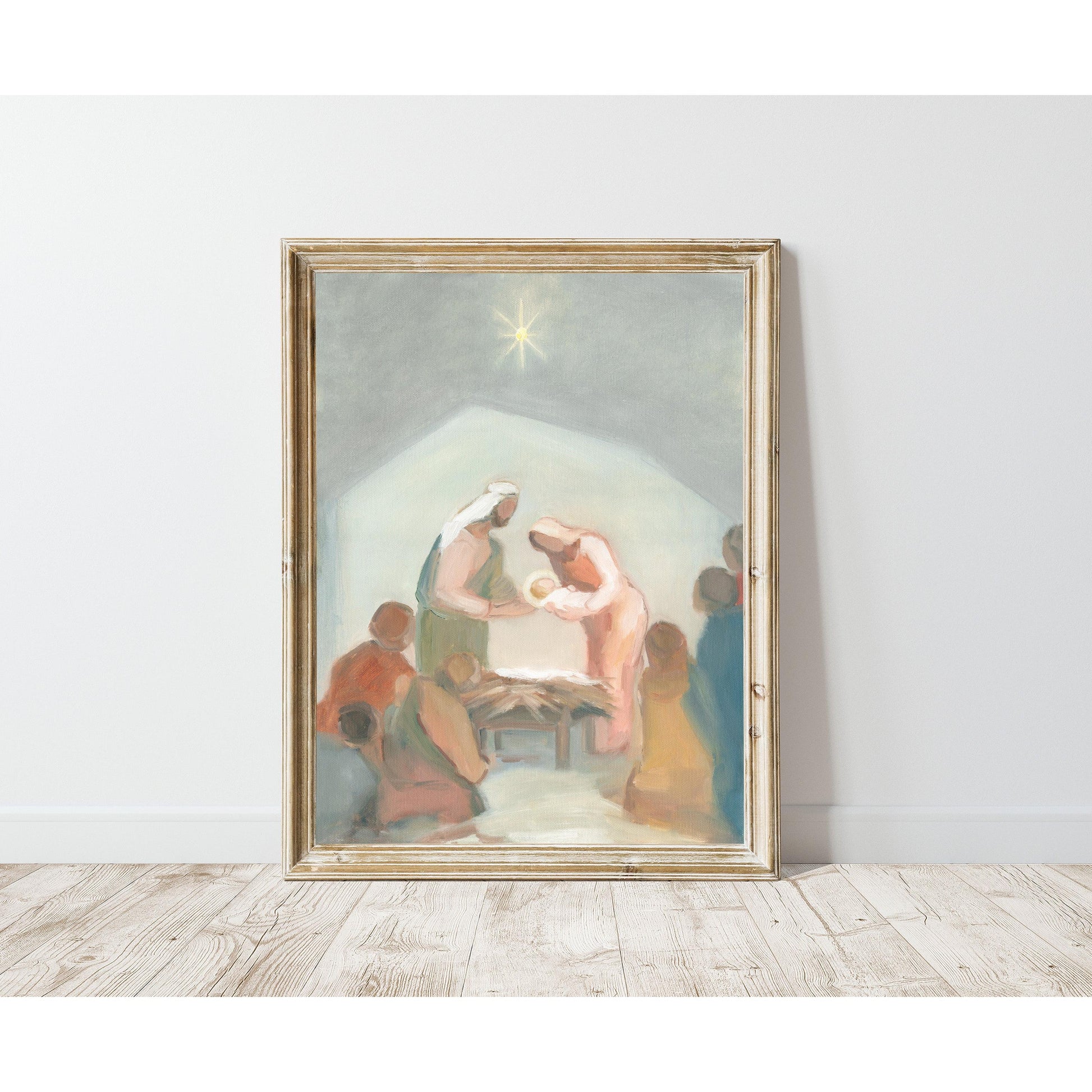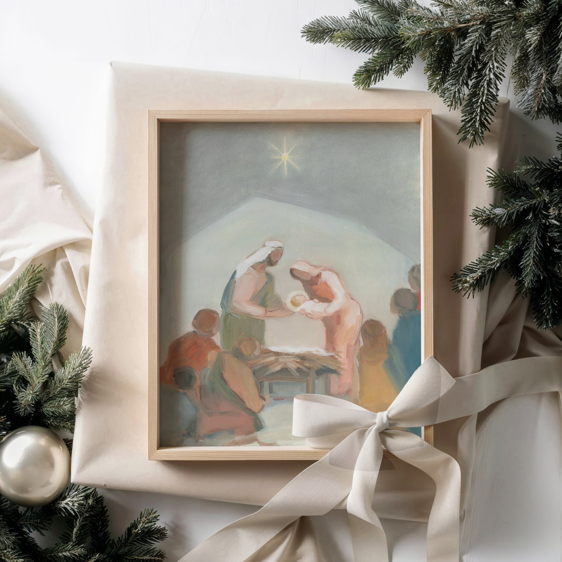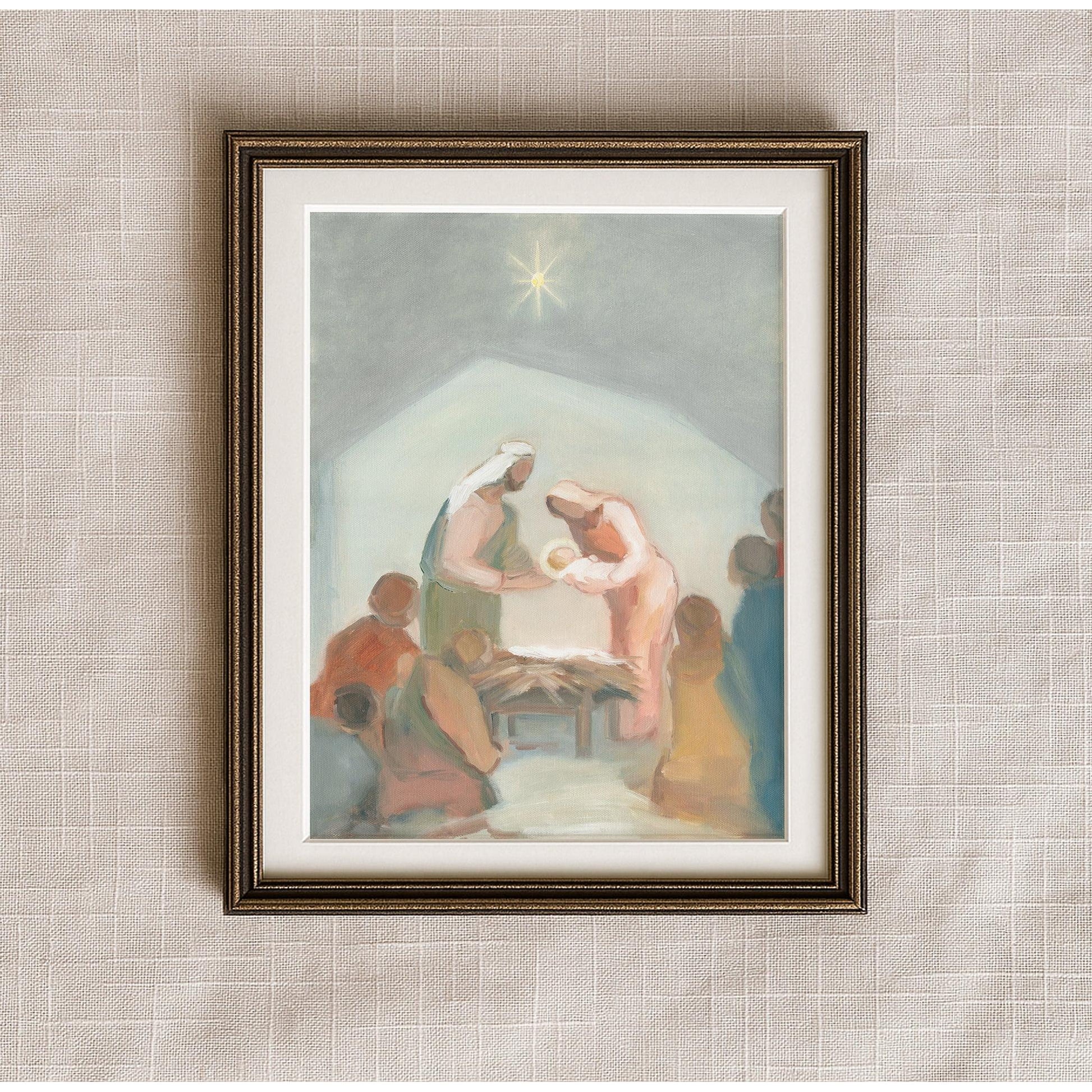 Christian Christmas Wall Art — The Gift from Above | Modern Nativity Scene Print