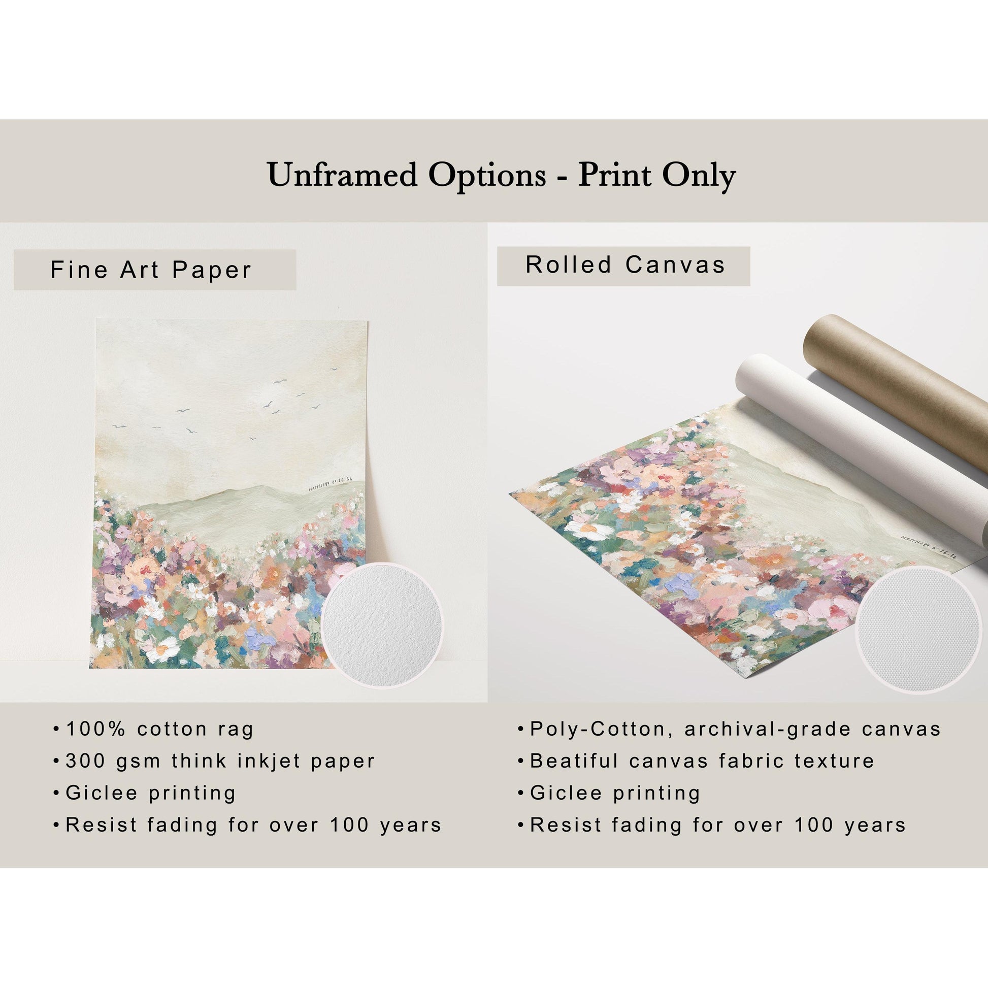 - Fine Art Paper (unframed)— Printed on thick, luxurious fine art paper. ˙✦ A perfect choice if you’d like to use your own frame and create a custom look for your space.