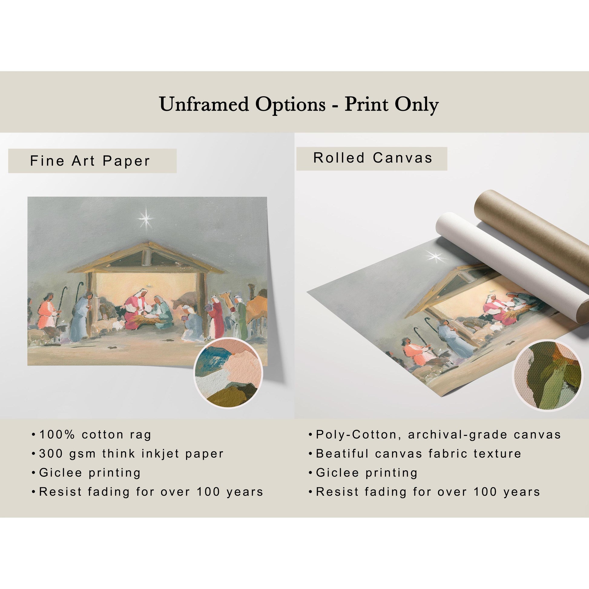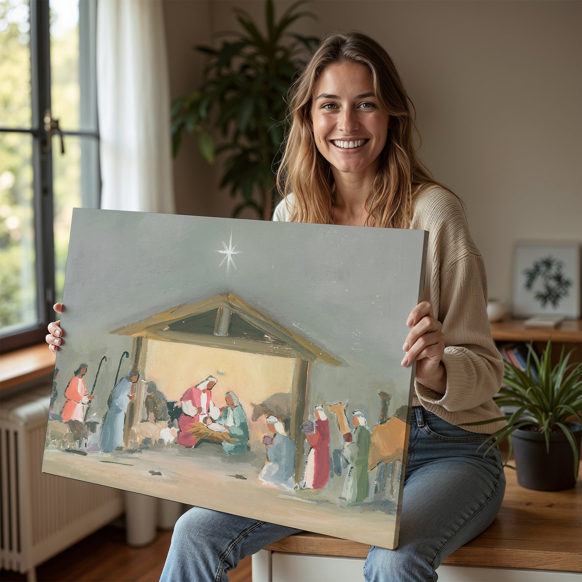 Nativity wall art — O Holy Night Christian Christmas print for meaningful holiday décor and faith-filled gifting.