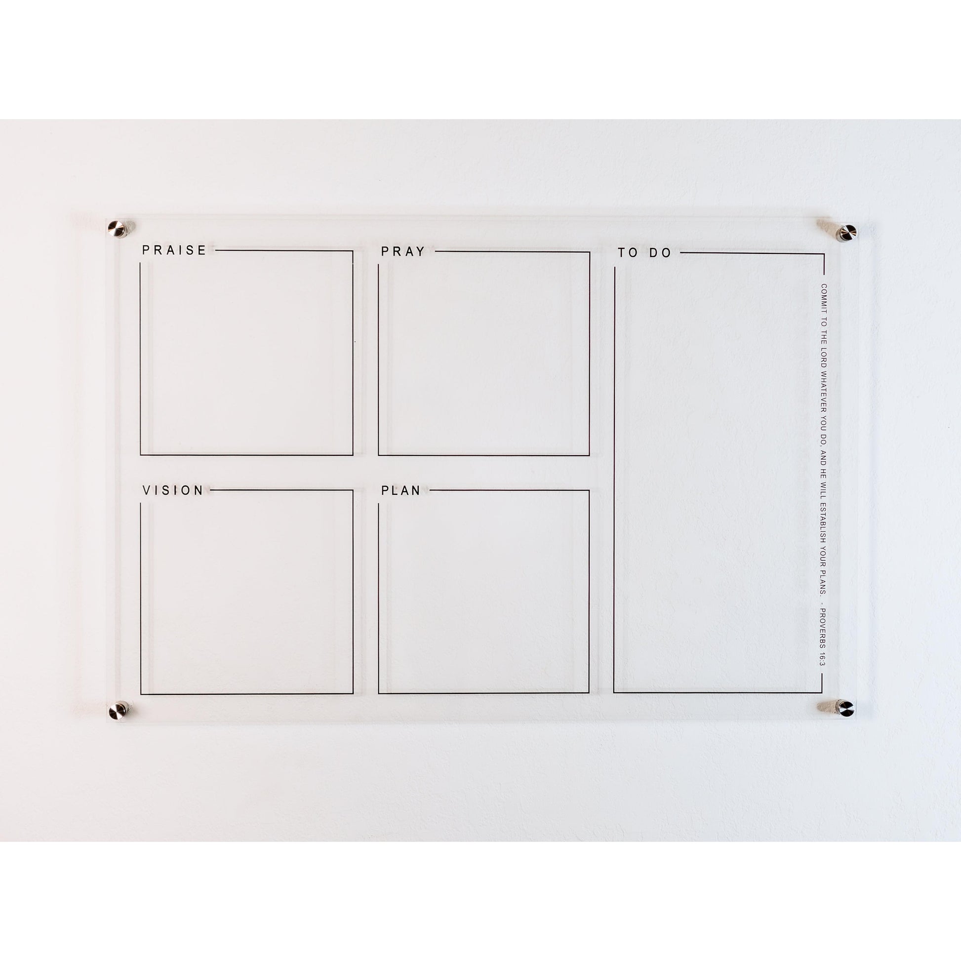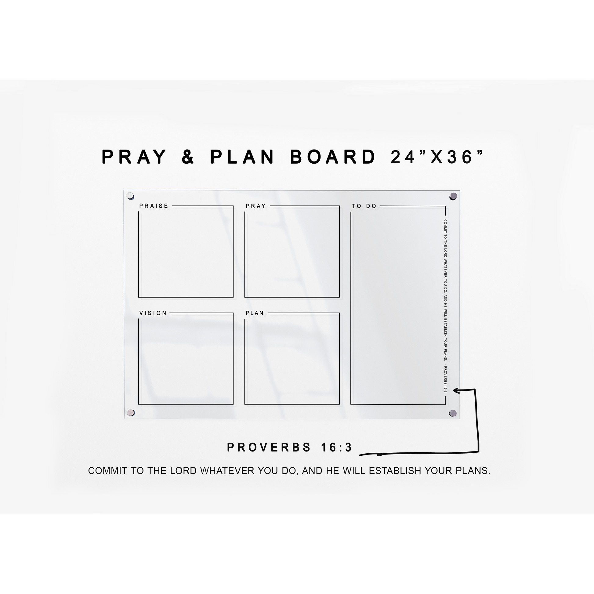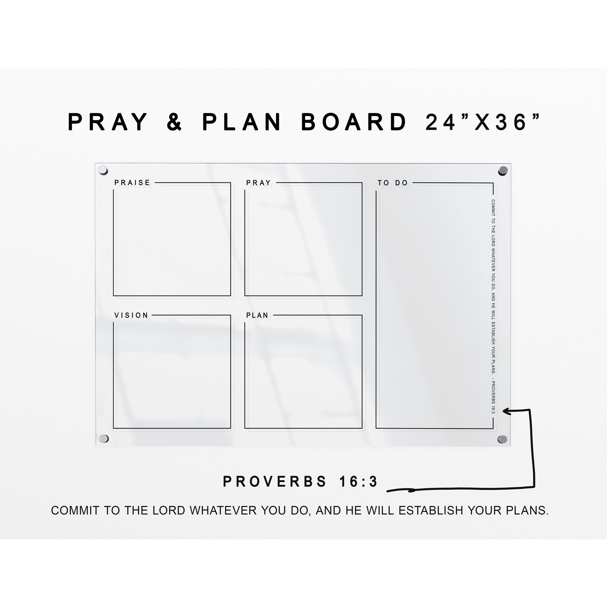 Pray & Plan Acrylic Board | Christian Acrylic Planner | Proverbs 16:3 24"x36"